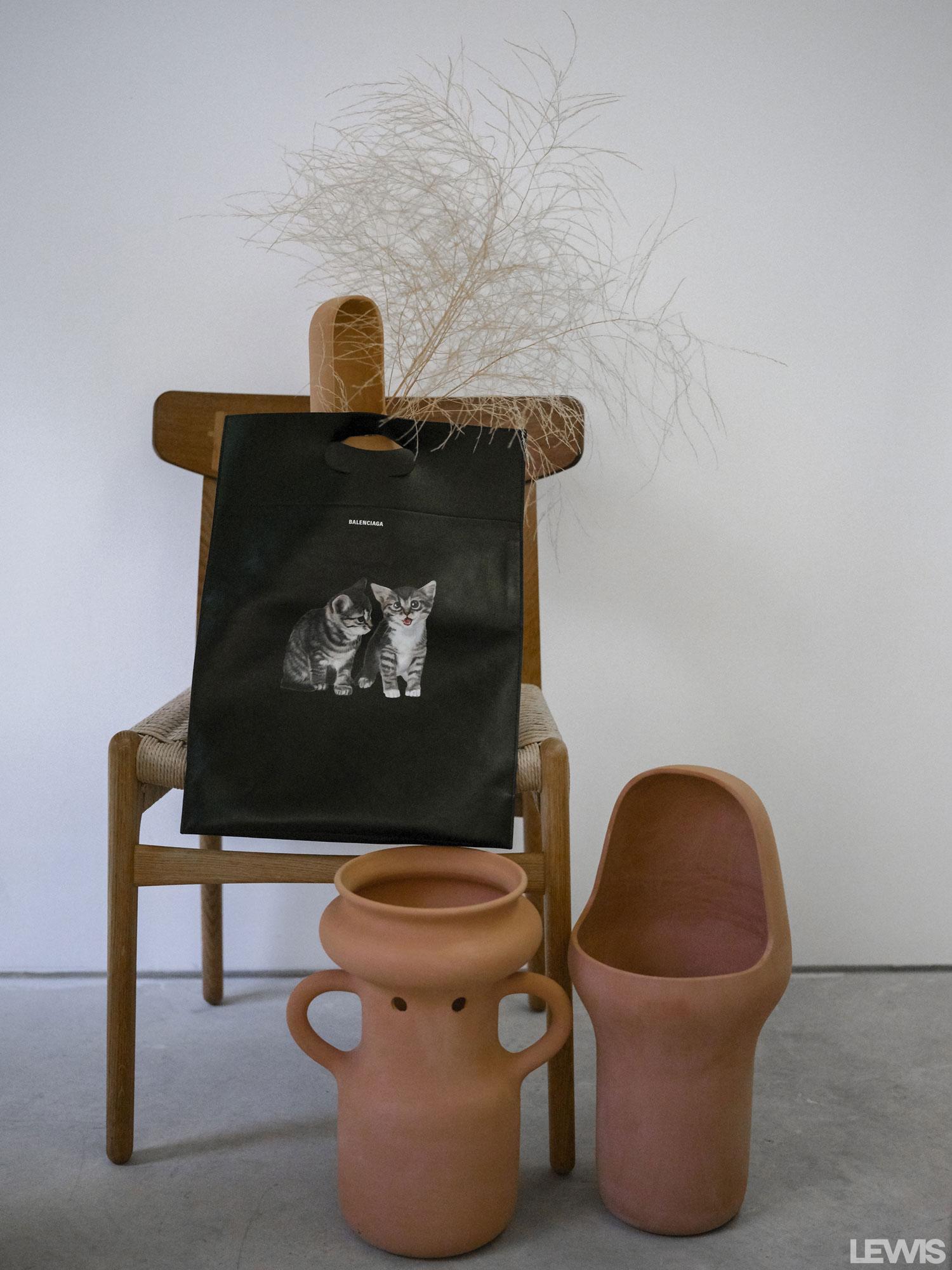 - CH23 CARL HANSEN chair, GARDENIAS JAIME HAYÓN for BD vases and BALENCIAGA bag. PELLICER total look