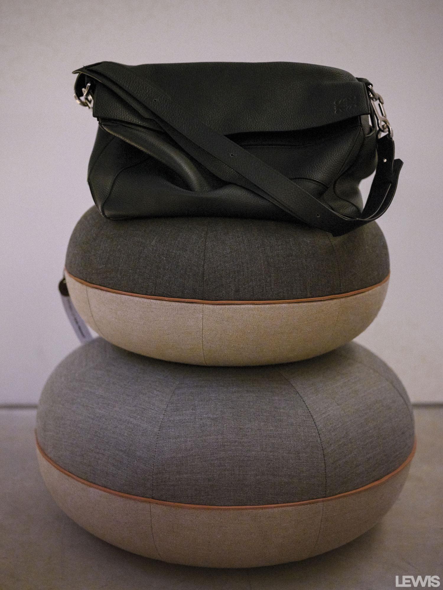 - POUF CECILIE MANZ for FRITZ HANSEN pufs and LOEWE bag.