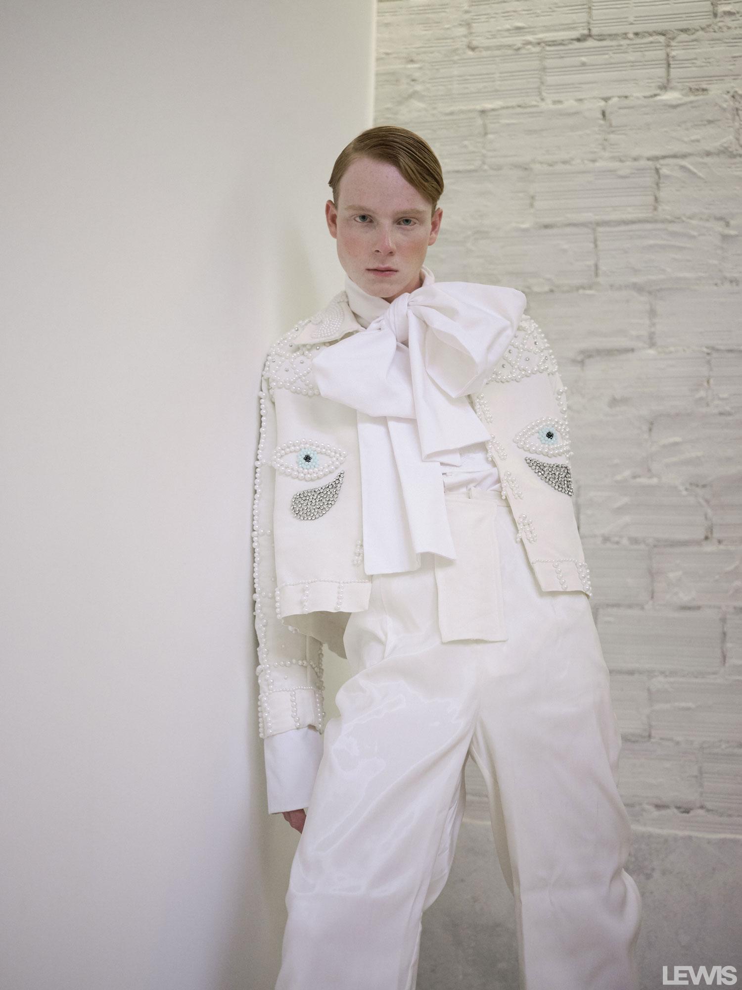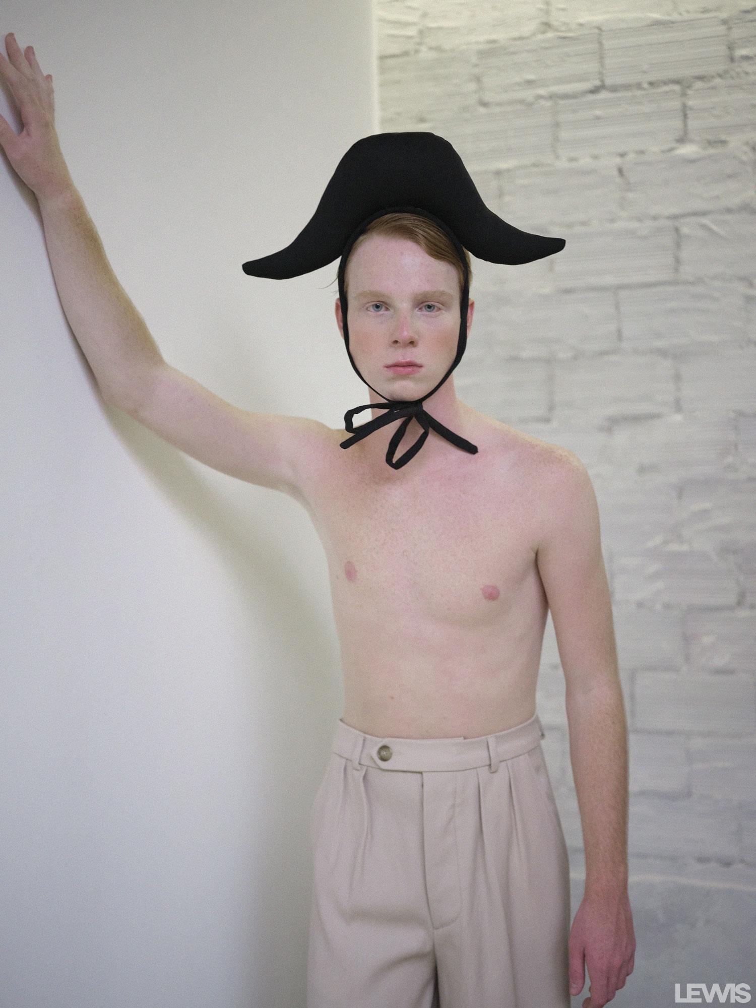 - BETTO GARCIA hat, ENOL BLASCO jacket and GUCCI shoes.