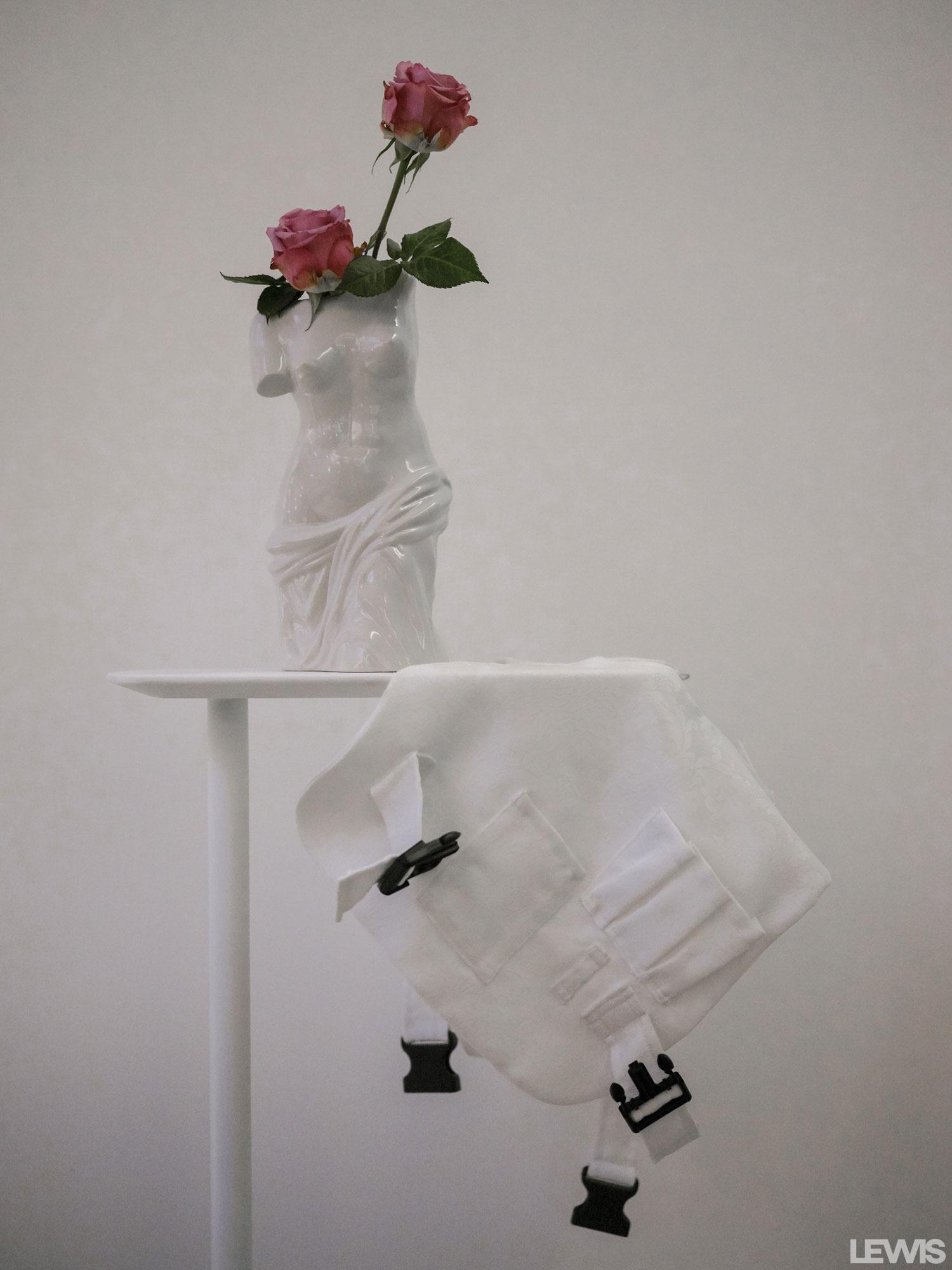 - :LAN INCLASS table, H&M vase and ENOL BLASCO vest. ENOL BLASCO total look.