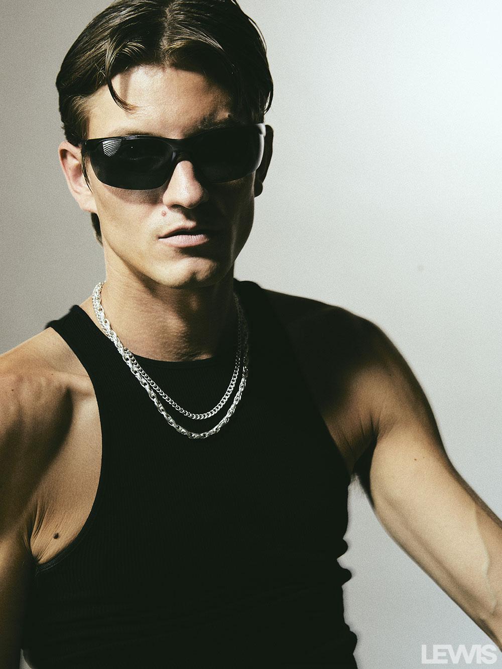 Sunglasses: Vintage Tank Top: COS Jeans: Zara Jock Strap: Calvin Klein Accessories: Stylist’s Own