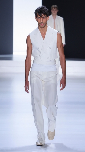 The impeccable tailoring and attention to detail were evident throughout the collection. Dolce & Gabbana showcased an array of impeccably fitted suits, blazers, and trousers, accentuating the masculine silhouette. Classic designs were reimagined with contemporary cuts and unexpected details, demonstrating the brand’s ability to blend tradition and innovation seamlessly.