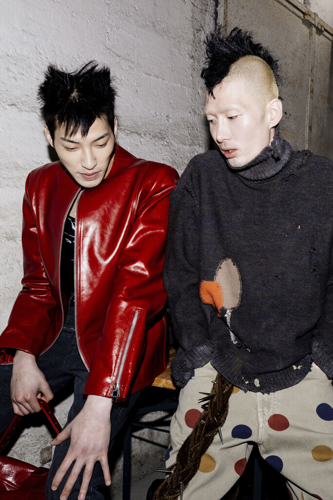 Step behind the curtain with photographer Adam Siwek for an exclusive backstage glimpse of JORDANLUCA FW24. Witness the convergence of Italian elegance and British punk as they come to life, not on the runway, but in the candid moments before the show.