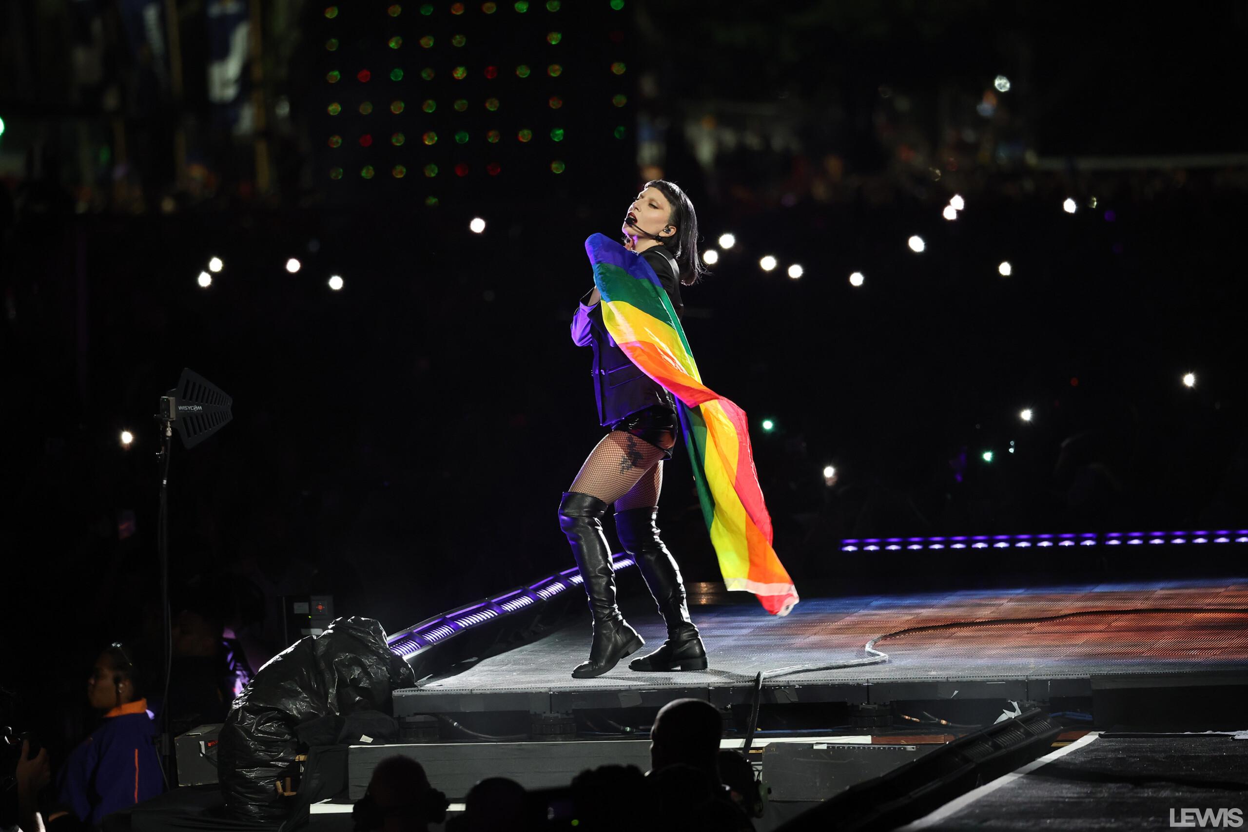The enthusiasm and energy from the millions of attendees were palpable, with countless fans waving rainbow-themed fans and passionately singing along. Massive screens erected along the beach ensured everyone experienced an intimate connection to Gaga’s electrifying stage presence.