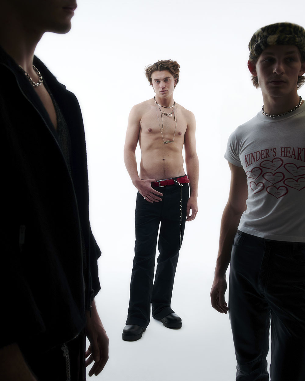 Three is a contemporary take on glam rock where silver accessories act like the common thread.