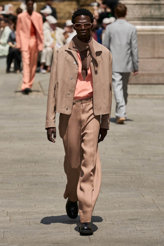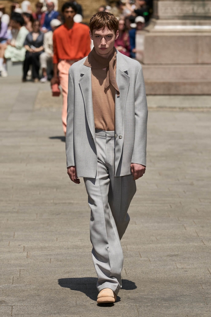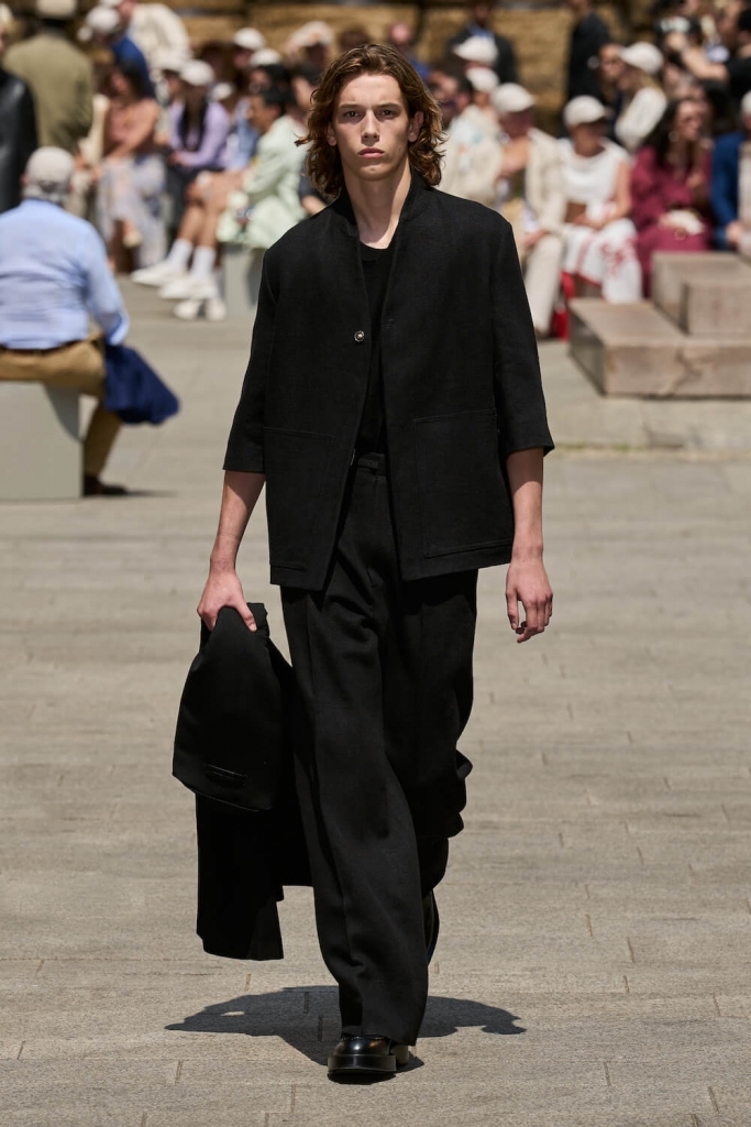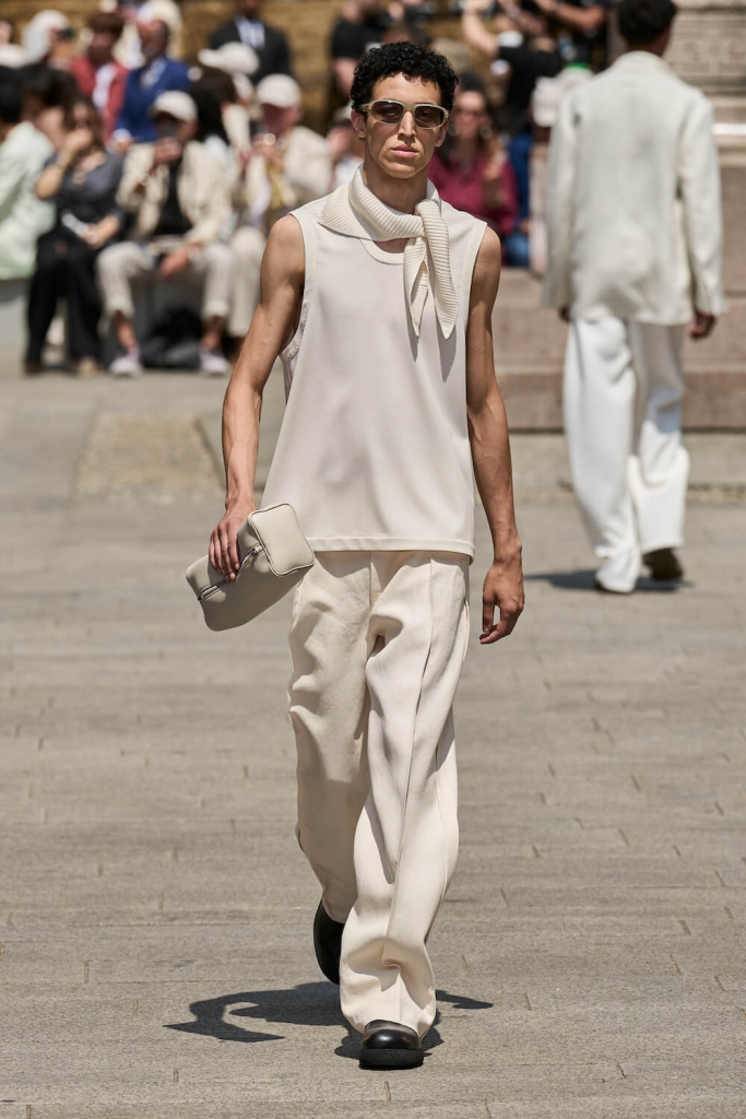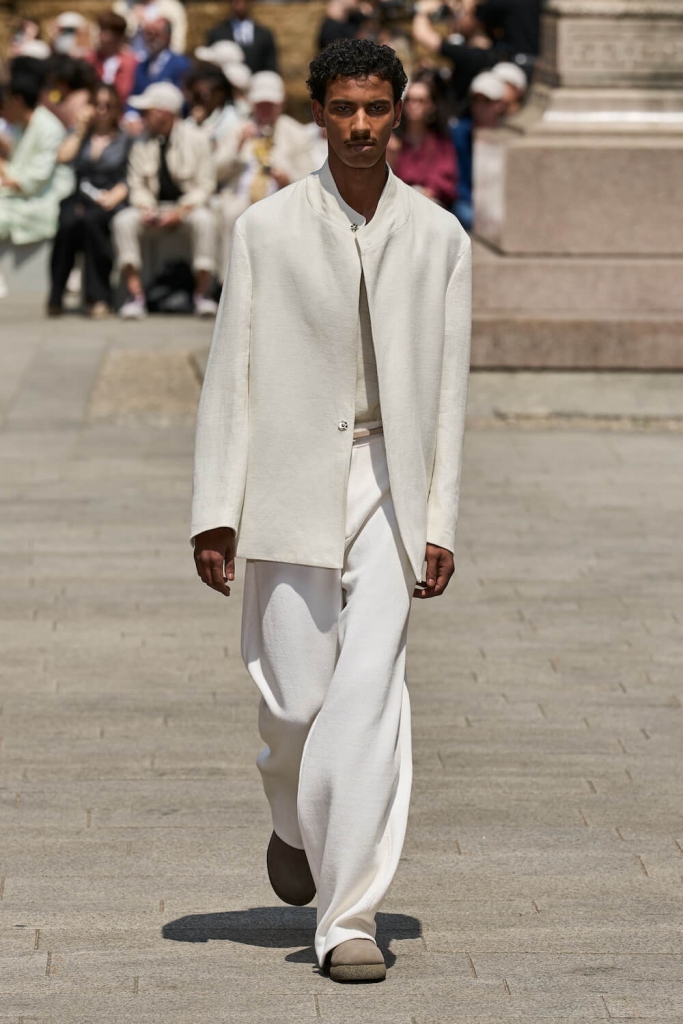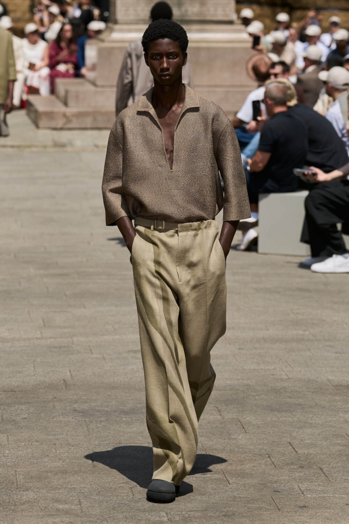 The collection’s standout pieces showcased Sartori’s masterful craftsmanship and innovative design approach. Lightweight linen blazers, intricately textured shirts, and fluid trousers exuded a sense of understated sophistication. ZEGNA’s attention to detail was truly remarkable, with carefully placed seams and discreet stitching elevating each piece. The integration of breathable fabrics and loose cuts ensured maximum comfort without compromising style, enabling men to navigate the warmer months with ease and flair.